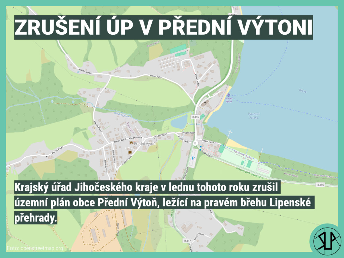 Krajský úřad Jihočeského kraje v lednu tohoto roku zrušil územní plán obce Přední Výtoň, ležící na pravém břehu Lipenské přehrady. V loňském roce schválili zastupitelé po deseti letech nový plán, který výrazně rozšiřoval zastavitelné plochy v okolí sídla.